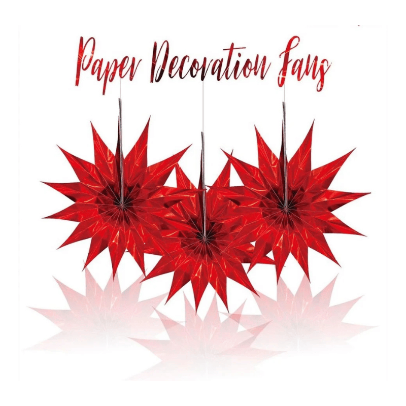 Red Shiny Paper Star Fan 30cm x 18pcs