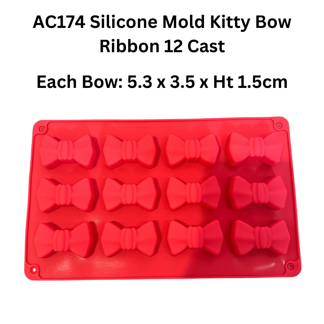AC174 Silicone Mold Kitty Bow Ribbon 12 Cast is backordered and will ship as soon as it is back in stock.